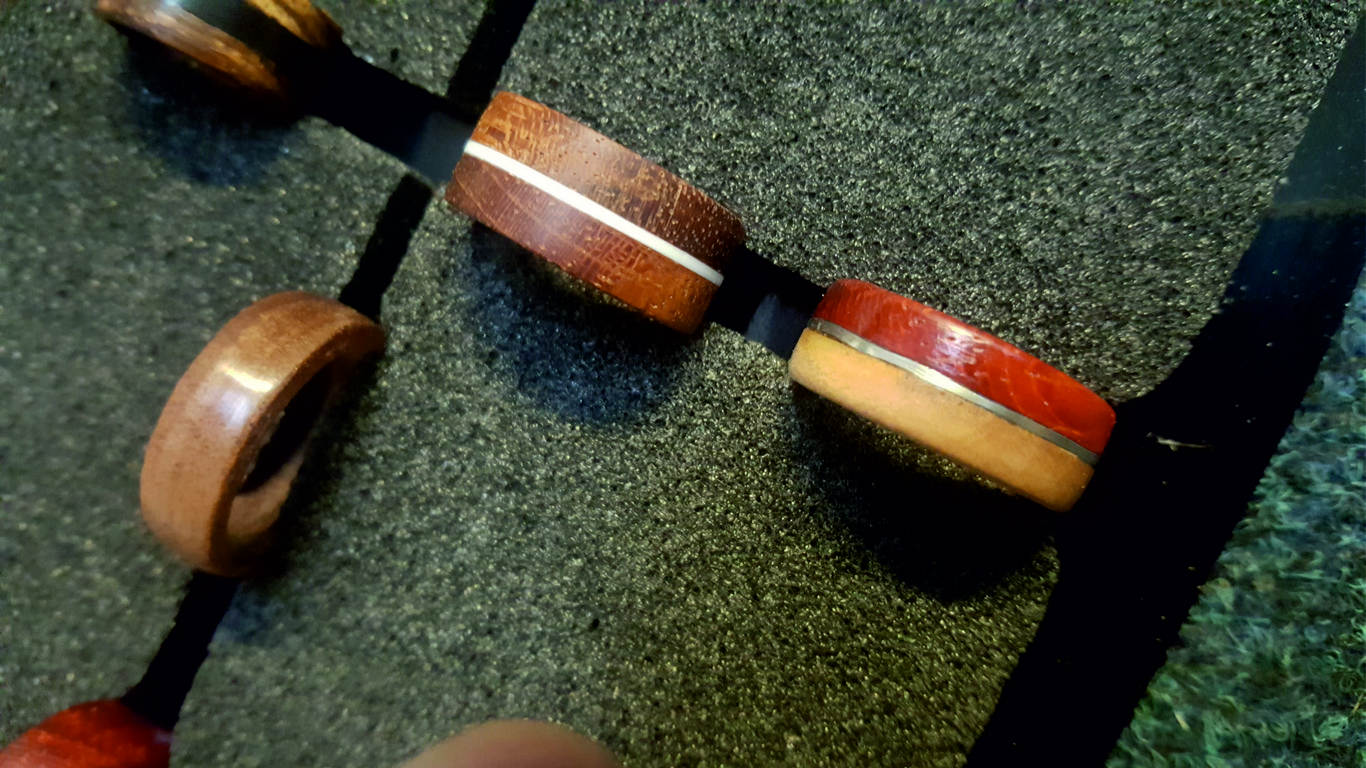 Oferujemy biżuterię wykonaną z drewna egzotycznego, pierścionki, kolczyki i inne, niepowtarzalne wzory, różne łączenia materiałów, nie tylko drewna z drewnem...