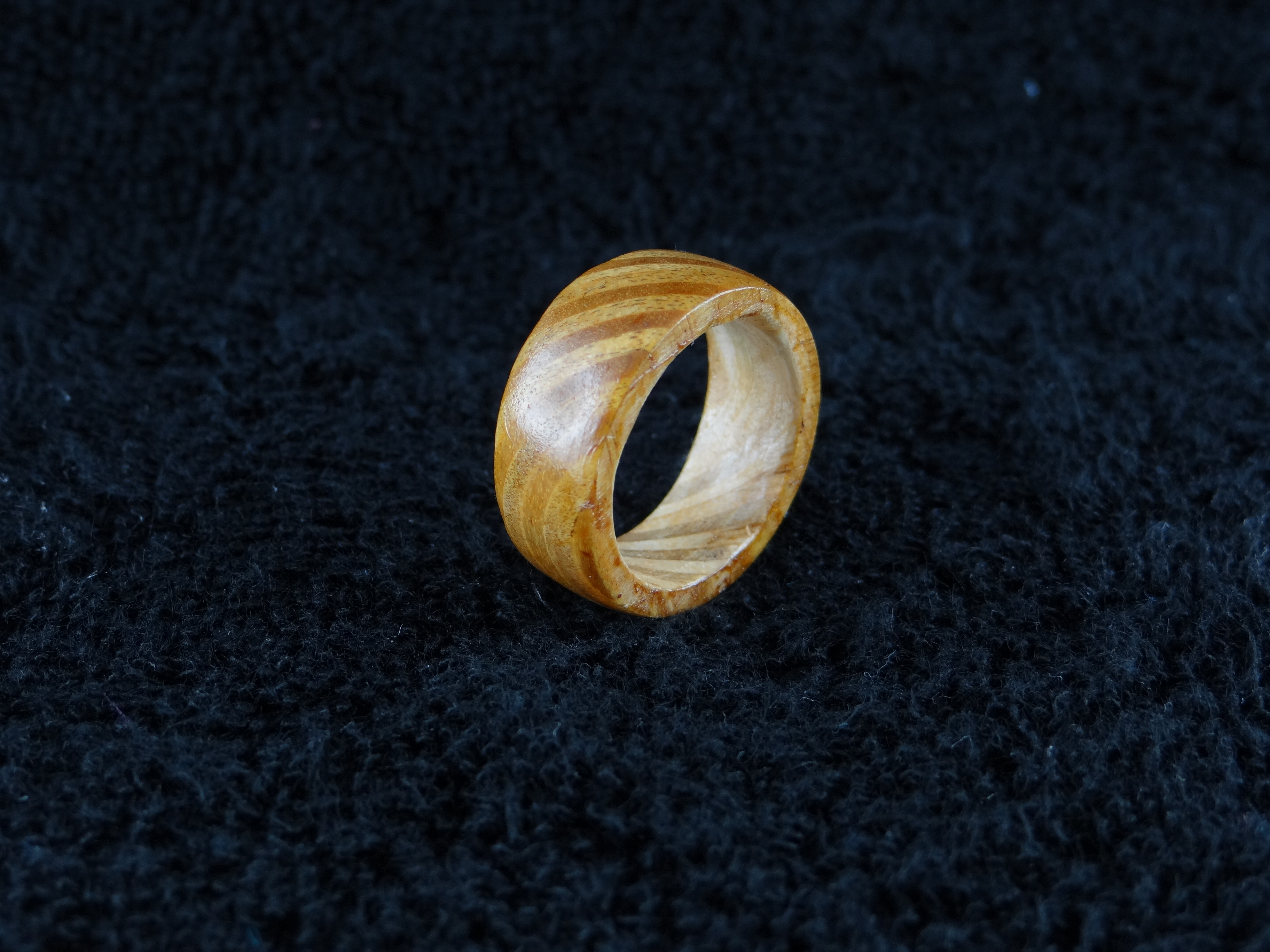 Każdy pierścionek jest indywidualny, na życzenie możemy powtórzyć wzór, jednakże należy pamiętać, że nie ma dwóch identycznych kawałków drewna, różni się ono rysunkiem słojów, ich zagęszczeniem, odcieniem itd. Biżuterię tworzy doświadczony artysta plastyk, dbając o oryginalność każdego projektu. Drewno pokrywane jest woskiem Caranauba (mniejszy połysk), odporność na wodę i zabrudzenie powierzchni, lub politurą szelakową własnej produkcji (duży połysk)